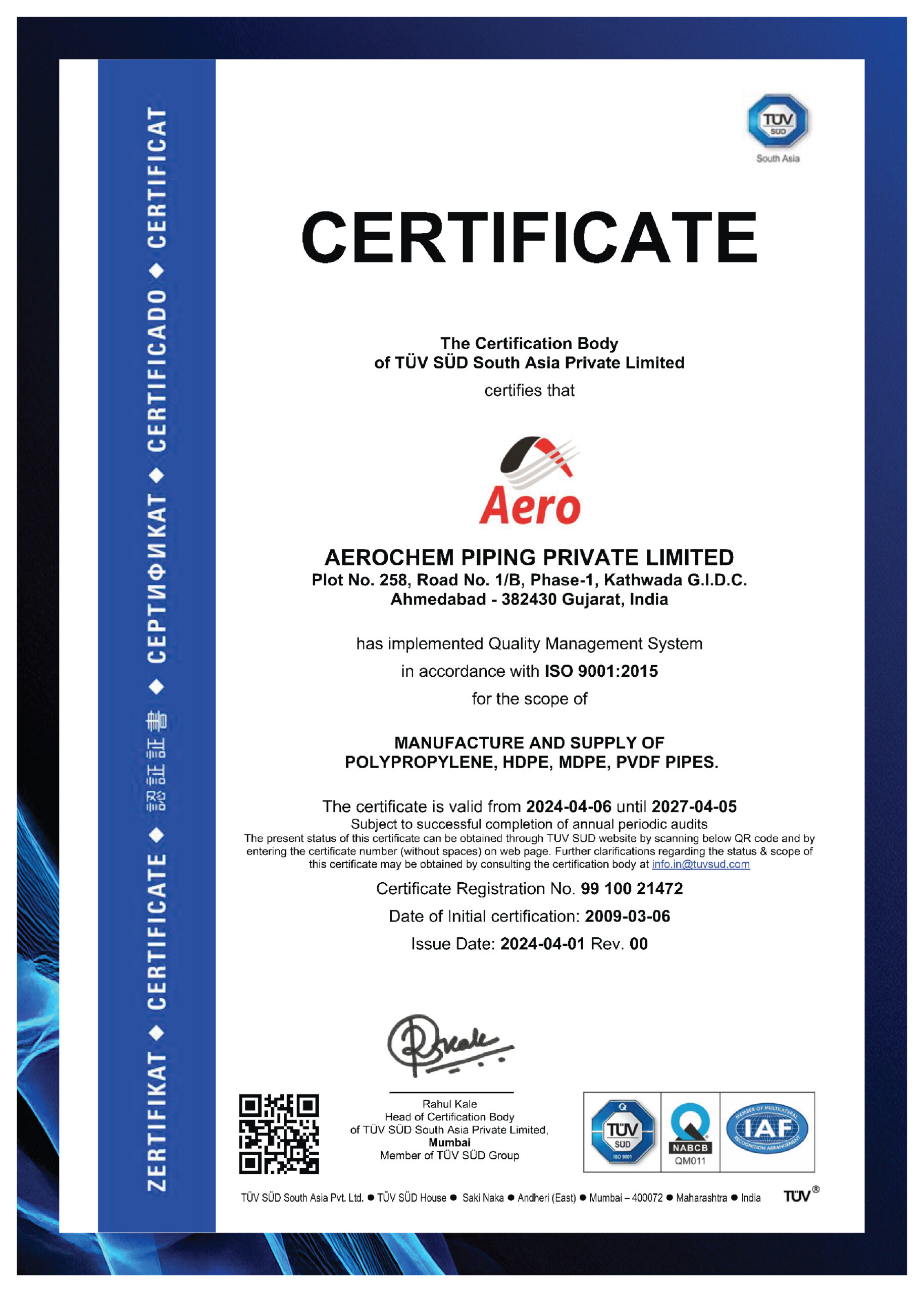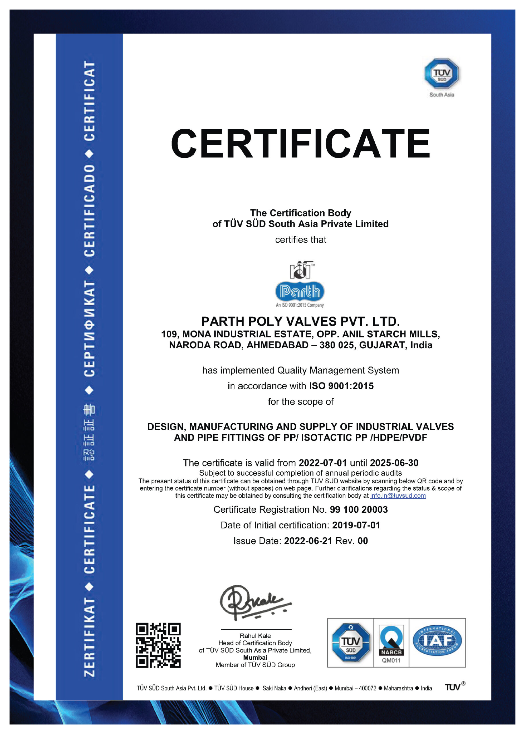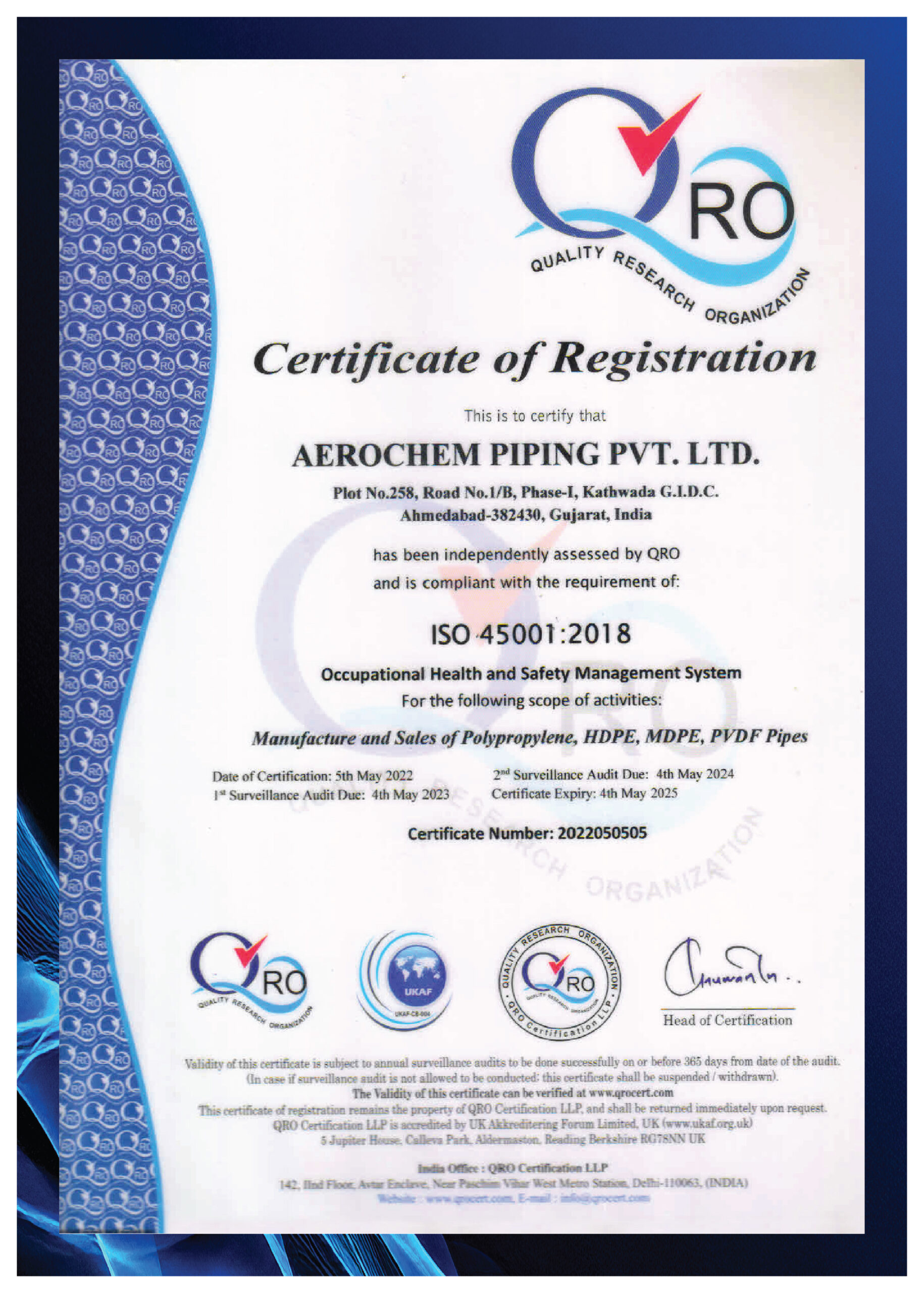 Since 1991, Parth Poly Fusion Pvt. Ltd. and Aerochem Piping Pvt. Ltd. have been leaders in manufacturing industrial flow-control solutions. Formerly known as Parth Plastic Industries and Parth Poly Valves Pvt. Ltd., we offer a wide range of products, including Polypropylene, PPR-C, PPH, PVDF, and HDPE valves, pipes, fittings, fusion systems, and custom-engineered accessories.